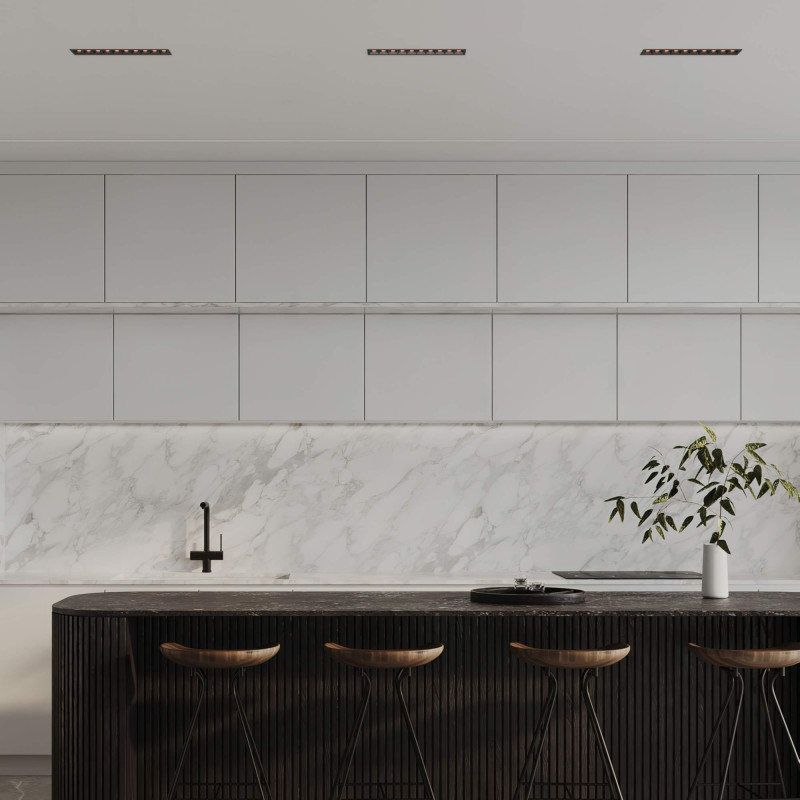 - Versatilità nel design: disponibile in finitura bianca o nera e in due temperature di colore: bianco caldo (3000K) per atmosfere accoglienti o bianco neutro (4000K) per una maggiore funzionalità.