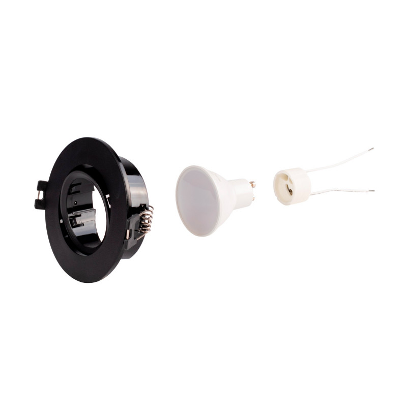 KIT x 10 - Anello per downlight basculante nero Ø90mm + lampadina GU10 5W + portalampada GU10