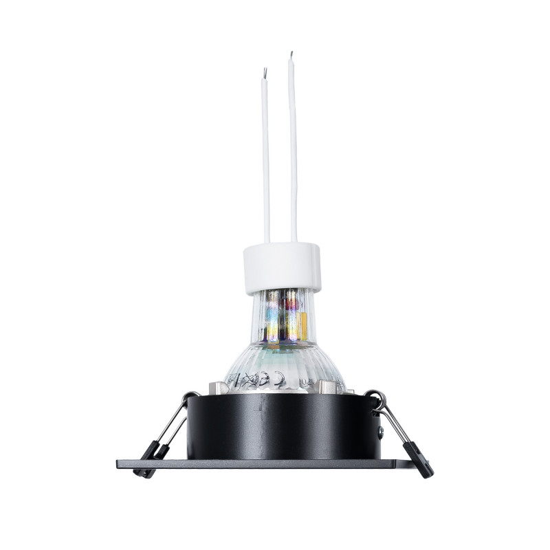 KIT Anello downlight quadrato 93x93mm (nero/champagne) + Lampadina GU10 5,4W + Portalampada