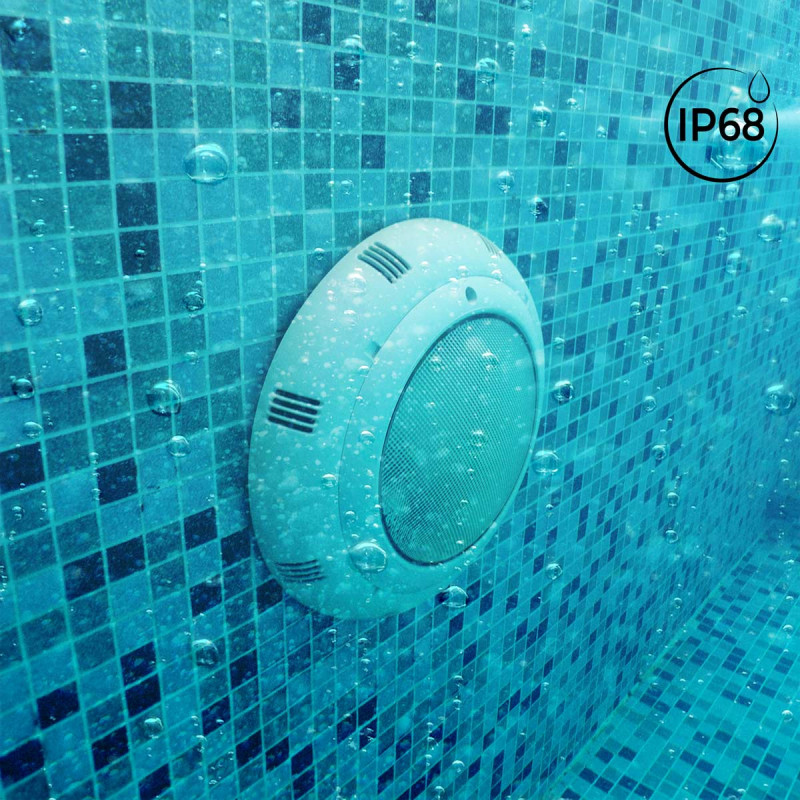 Illuminate la vostra piscina in modo efficiente e sicuro, scegliendo tra una potente luce bianca o effetti cromatici personalizzati.