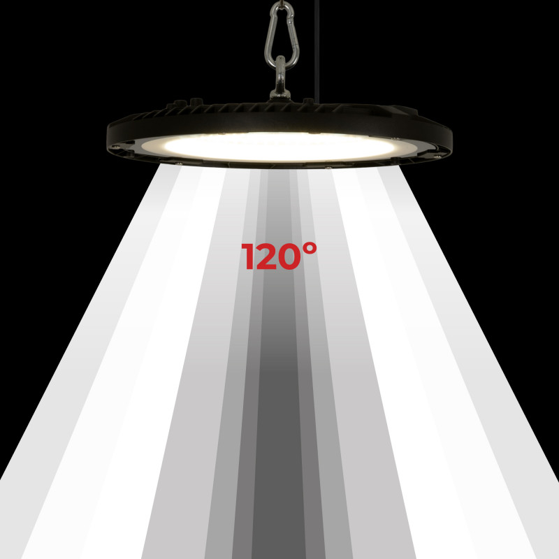 - Elevata efficienza luminosa: con una potenza di 100W e un'elevata efficienza di 110 lm/W, questa cappa LED non solo illumina grandi aree ma ottimizza anche il consumo energetico. Offre un'illuminazione grandangolare di 120°.