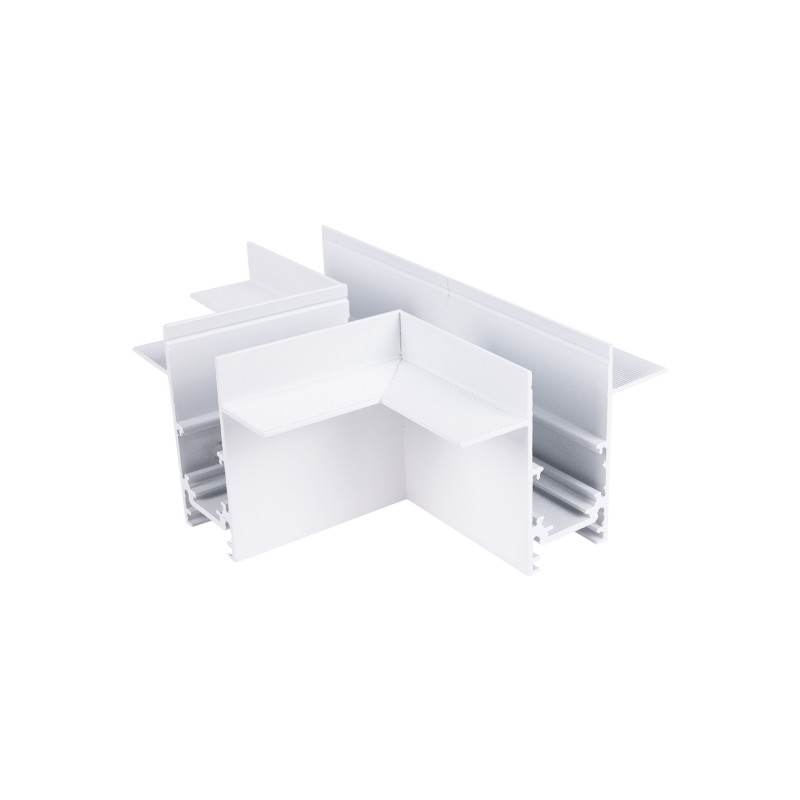 Il connettore a "T" consente di collegare tre sezioni di binario magnetico da incasso di 20 mm ad angolo retto (90°), cioè a "T", sempre sullo stesso piano.
