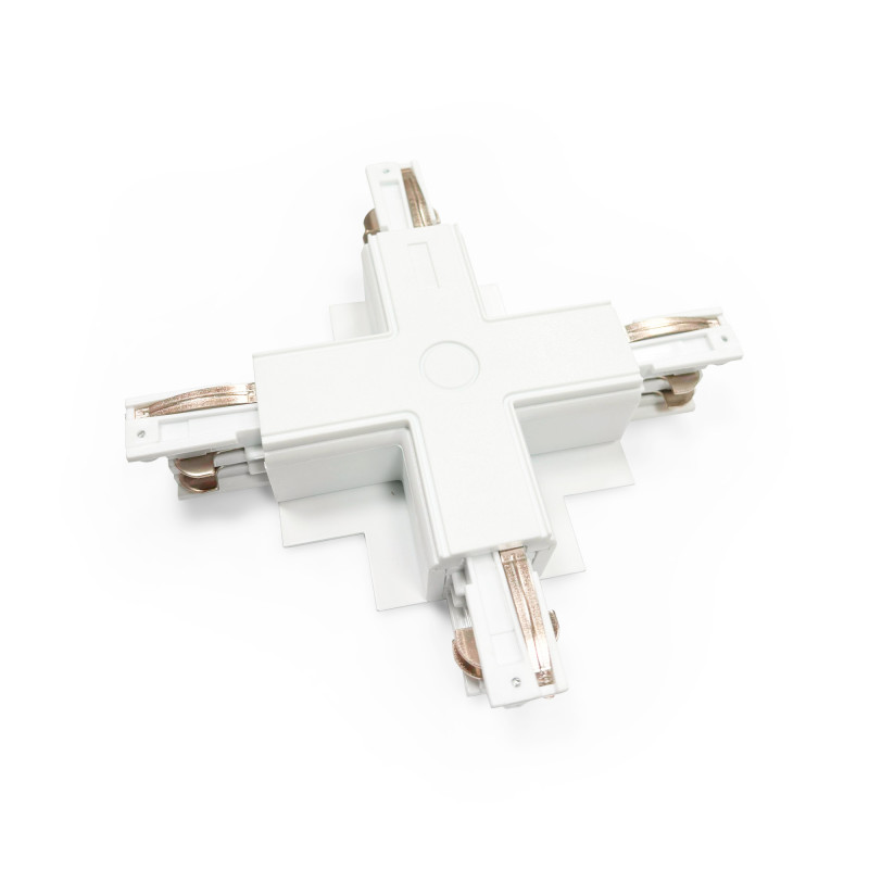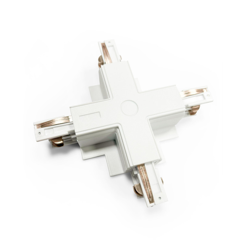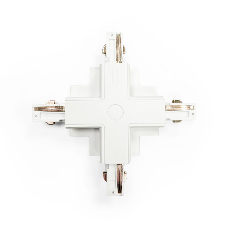 Giunto a X per binari da incasso trifase: accessorio indispensabile per le installazioni.
