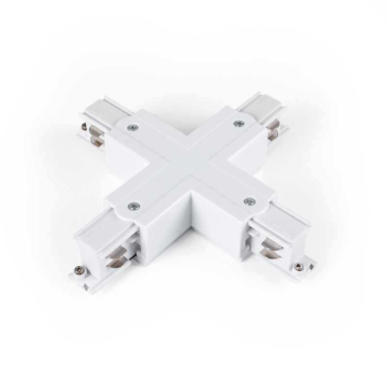 Giunto a X per binario trifase montato in superficie: accessorio essenziale per le installazioni.