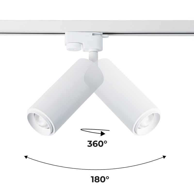 Faretto a binario monofase con angolo di luce regolabile e snodato 8W in 2800K