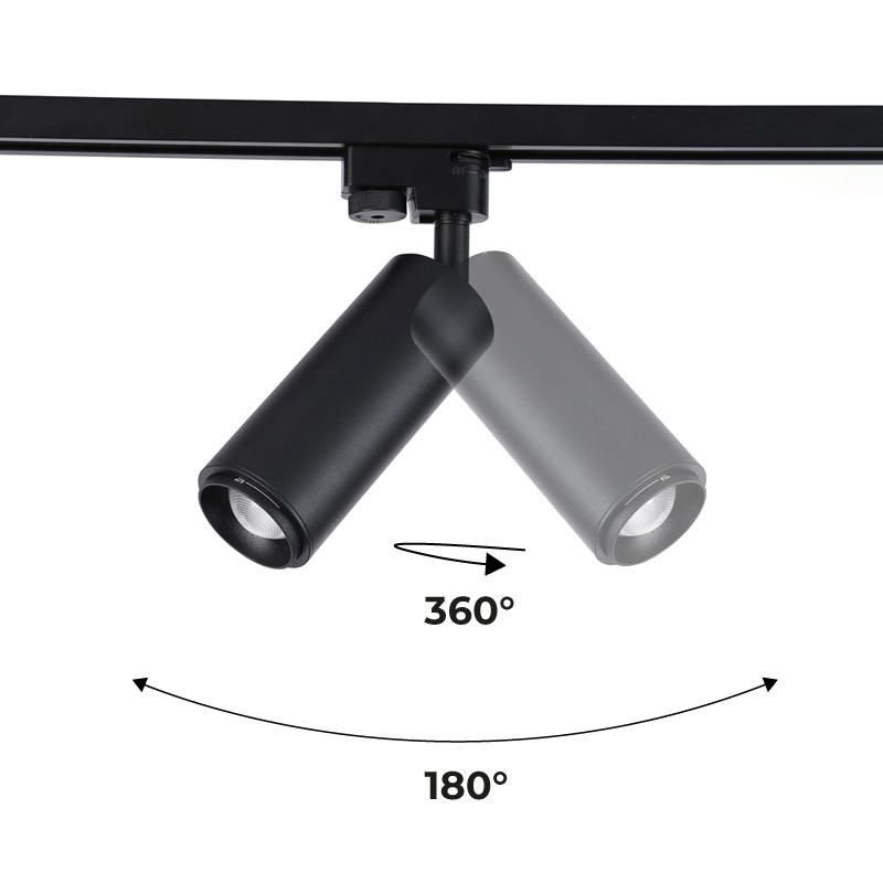 Faretto a binario monofase con angolo di luce regolabile e snodato 8W in 2800K