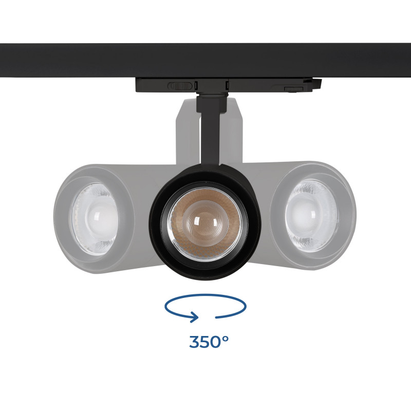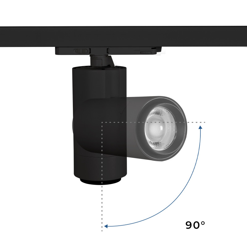 Questo faretto a binario LED trifase combina potenza, versatilità ed eccezionale resa cromatica. Ideale per evidenziare prodotti o dettagli in spazi commerciali.