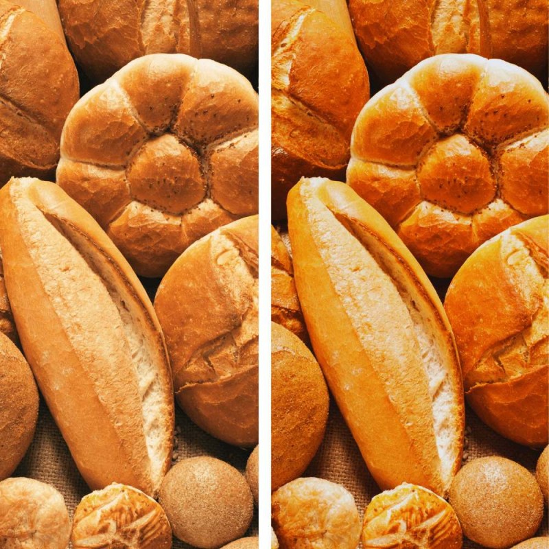 La luce calda dei LED esalta l'aspetto dorato dei prodotti di panifici, facendoli sembrare appena usciti dal forno. L'elevato indice di resa cromatica mostra il colore reale in modo naturale. Pane, pasta e dolci sono prodotti che, anche se appena sfornati, possono perdere gran parte della loro attrattiva se sottoposti a un'illuminazione inadeguata che li fa sembrare pallidi.