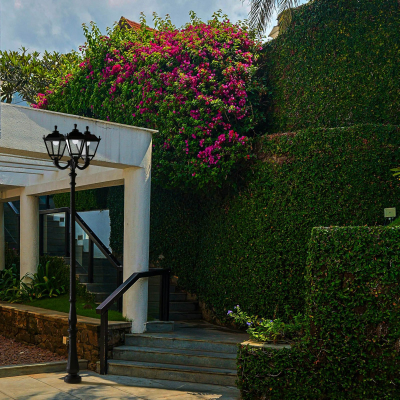 Offre la resistenza di un palo in metallo con i vantaggi unici della resina: totale resistenza alla corrosione e all'ossidazione, nessuna manutenzione. Include tre diffusori in stile classico, opalino o trasparente.
