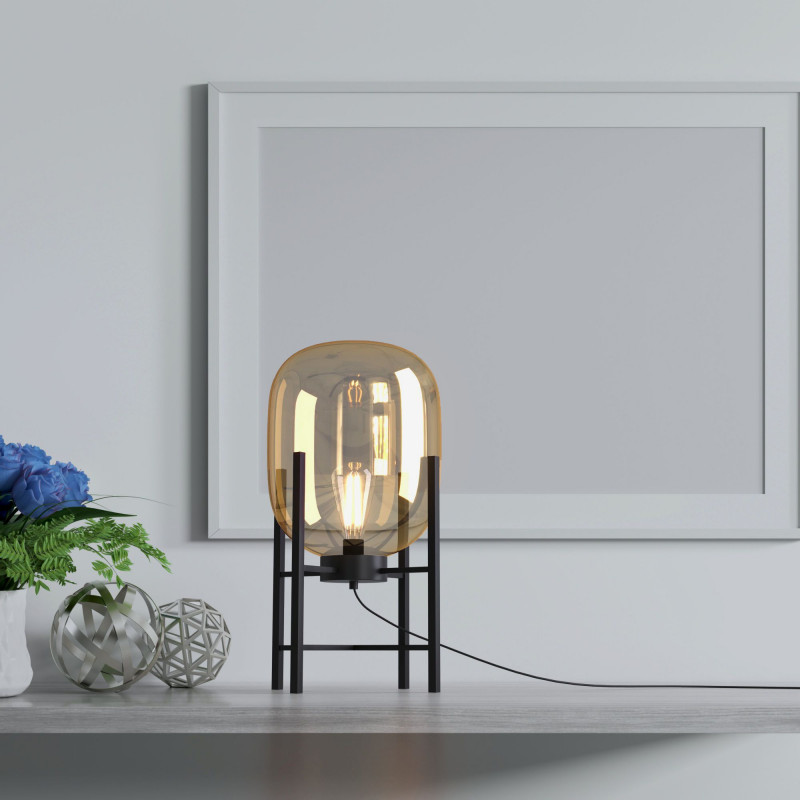 - Colori accattivanti: paralume in vetro disponibile in ambra o grigio fumo.