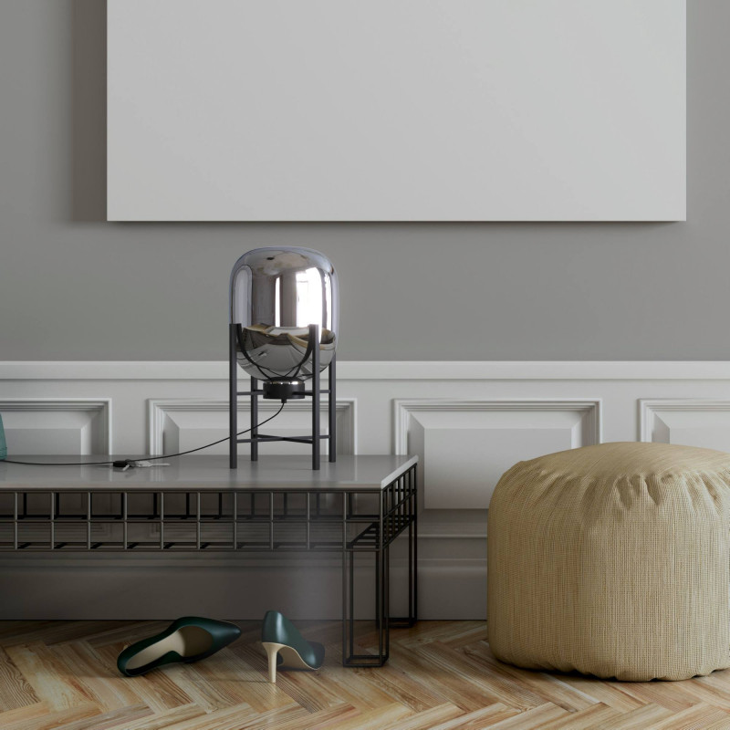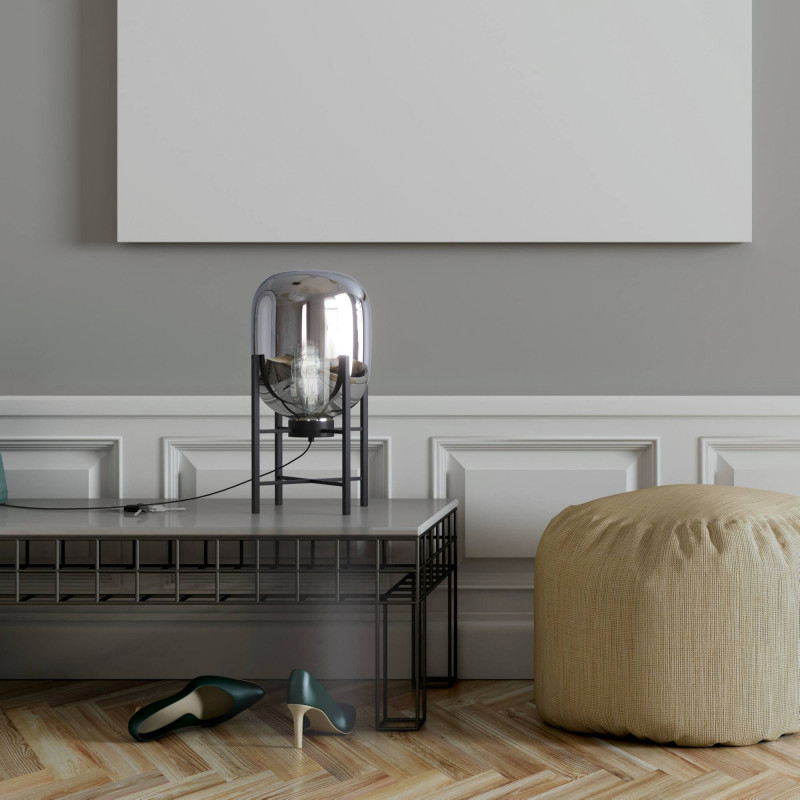 - Colori accattivanti: paralume in vetro disponibile in ambra o grigio fumo.