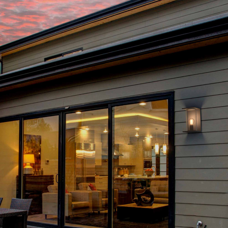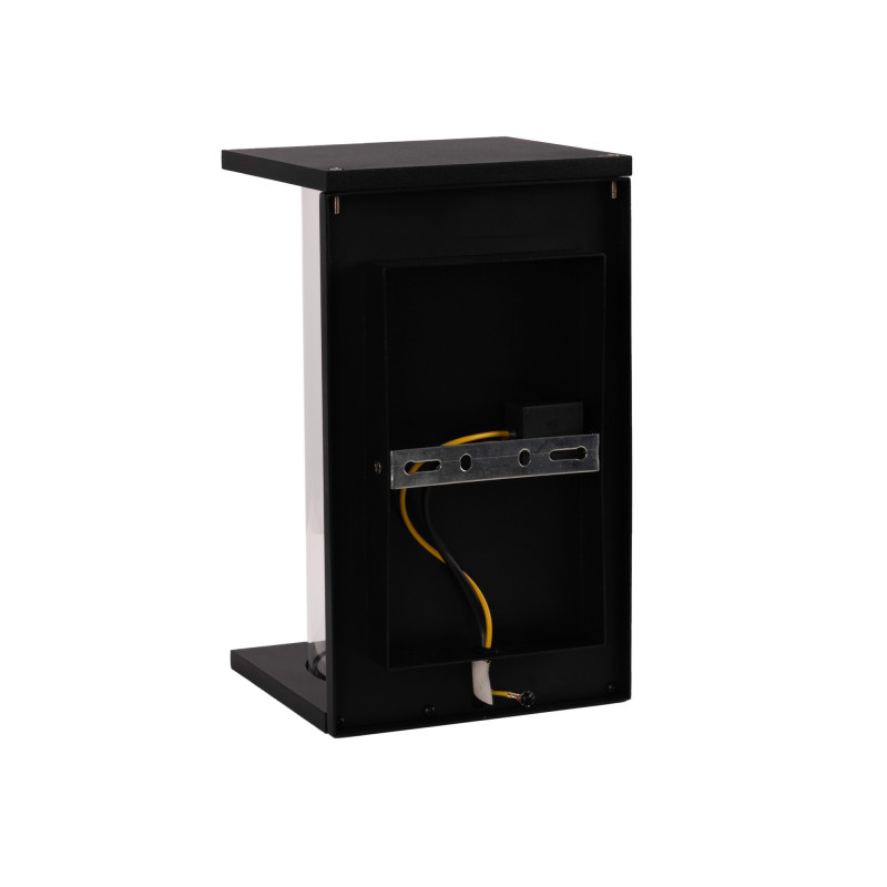 L'applique da esterno "Arzo" combina un corpo in alluminio in finitura nera opaca con un diffusore cilindrico in vetro trasparente, il cui design arricchisce l'estetica di qualsiasi spazio.