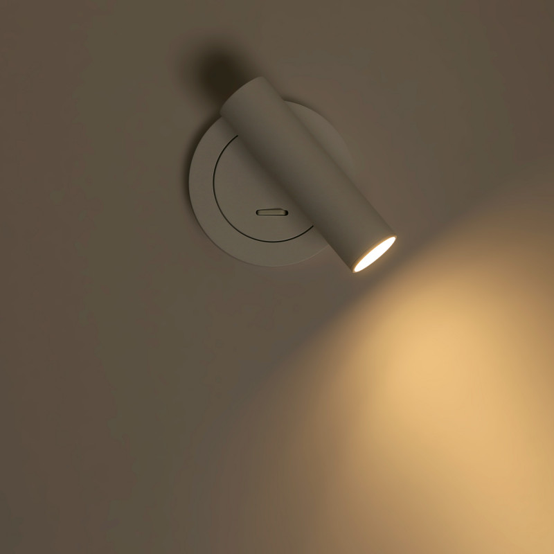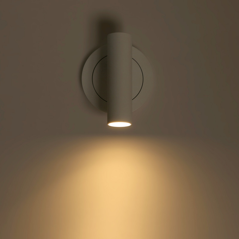 Questa lampada da parete ha un design moderno con finitura in metallo spazzolato. Il faretto cilindrico e la base circolare si adattano agli stili contemporaneo, industriale e scandinavo.