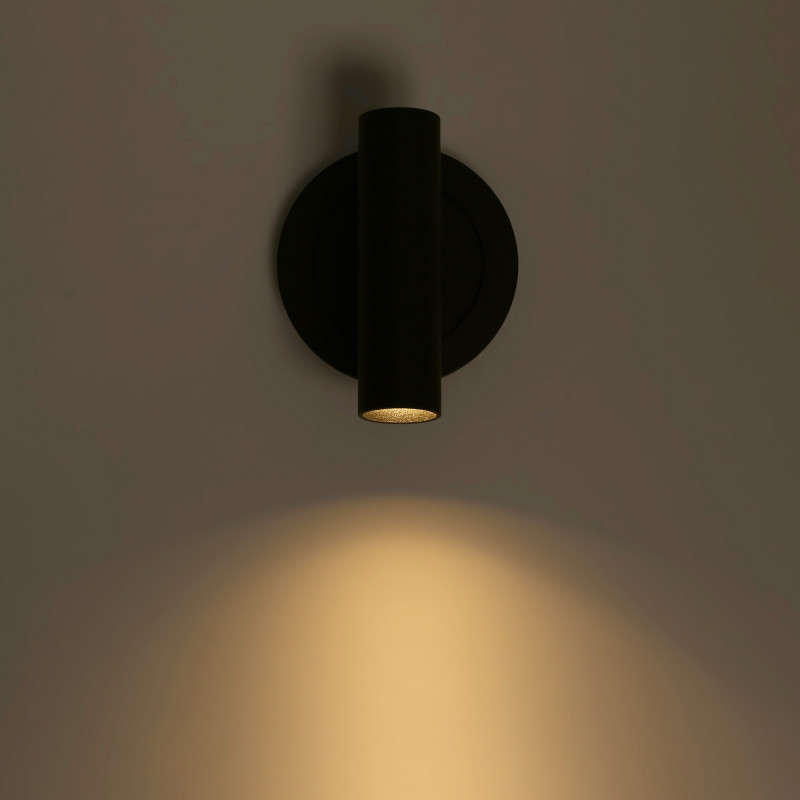 Questa lampada da parete ha un design moderno con finitura in metallo spazzolato. Il faretto cilindrico e la base circolare si adattano agli stili contemporaneo, industriale e scandinavo.