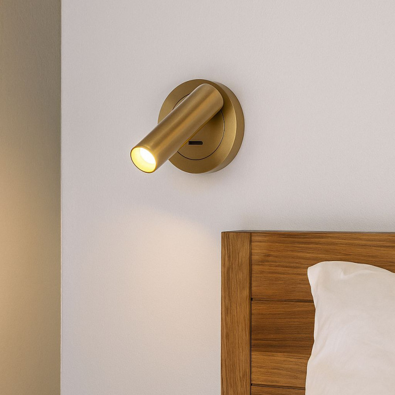 Questa lampada da parete ha un design moderno con finitura in metallo spazzolato. Il faretto cilindrico e la base circolare si adattano agli stili contemporaneo, industriale e scandinavo.