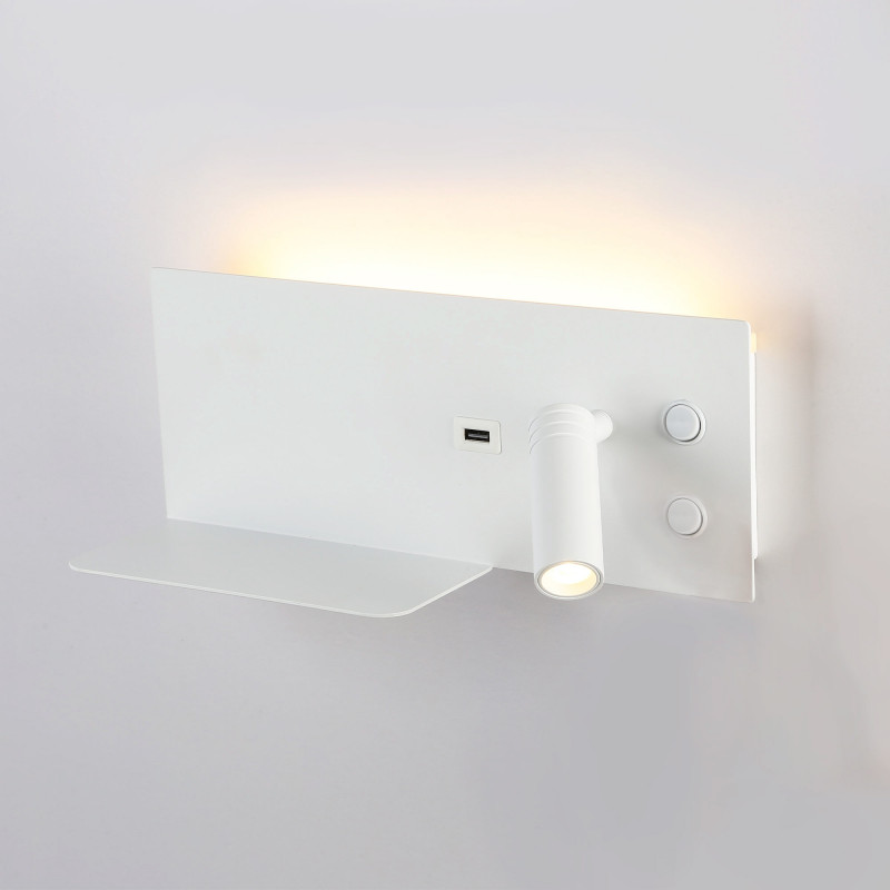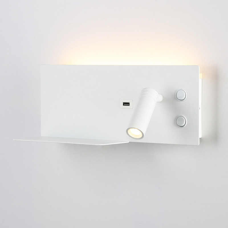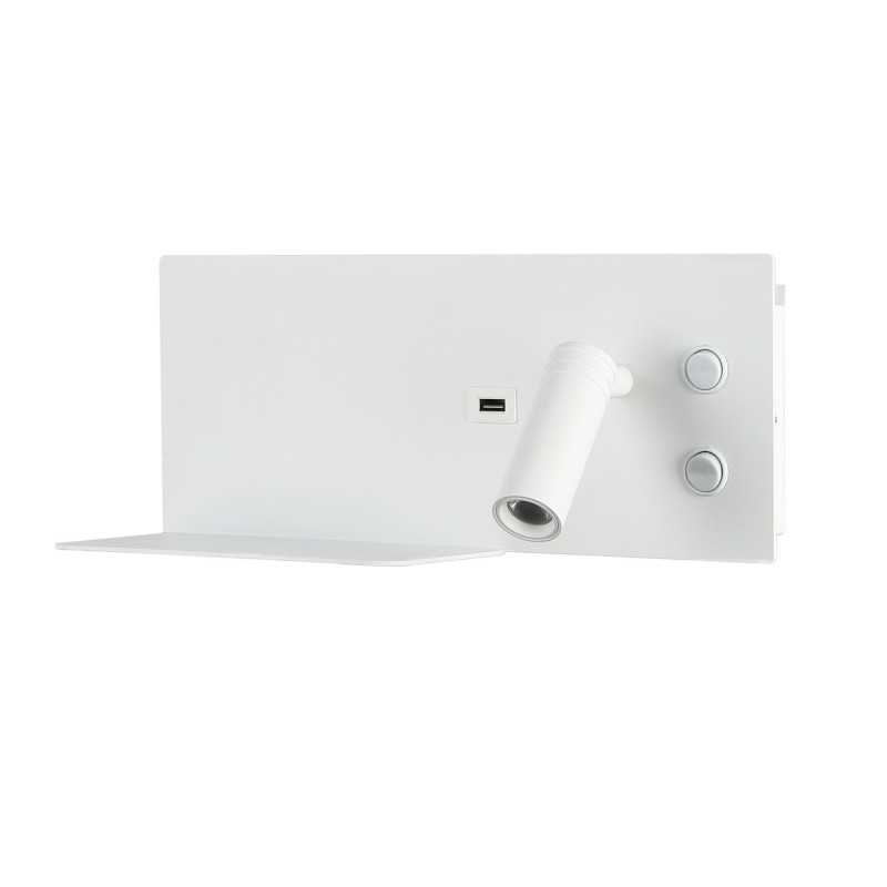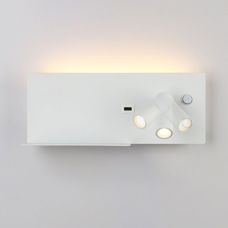 Applique da parete progettata per essere installata sulle testiere, con porta USB e doppia illuminazione.