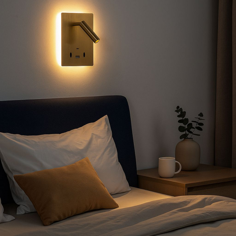 Applique "CLAUDI" dal design moderno, con porta USB e USB-C.