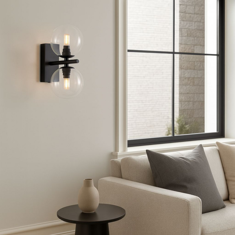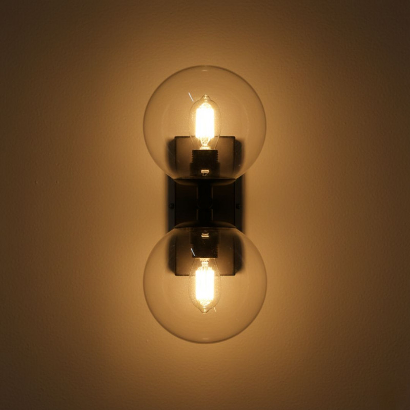 - Doppie sfere di vetro trasparente: consentono la massima diffusione della luce, creando un effetto luminoso elegante e uniforme.