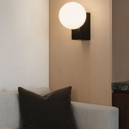 - Design minimalista: composta da una sfera di vetro opalino su una base di alluminio, si adatta perfettamente a interni classici, retrò o moderni.