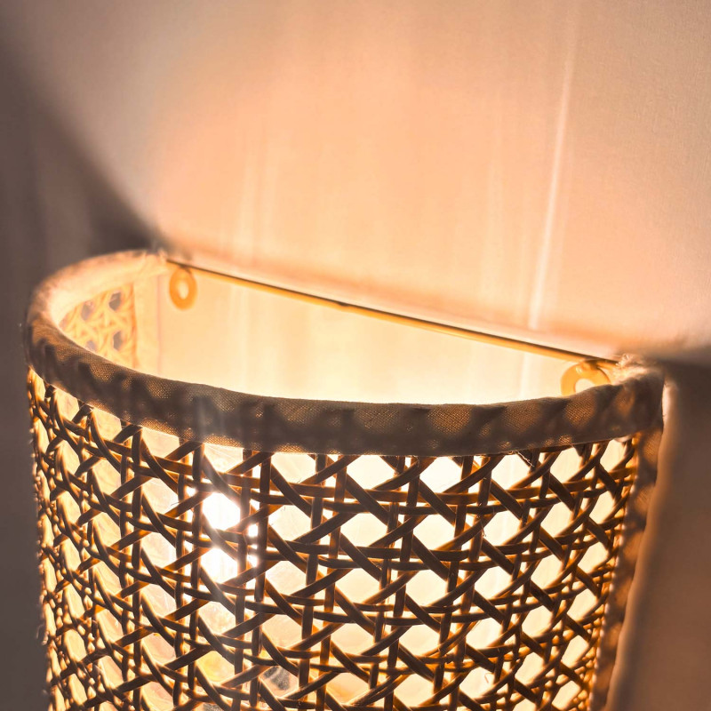 Applique da parete in vimini "BERGIN" - E27 - Interruttore e presa