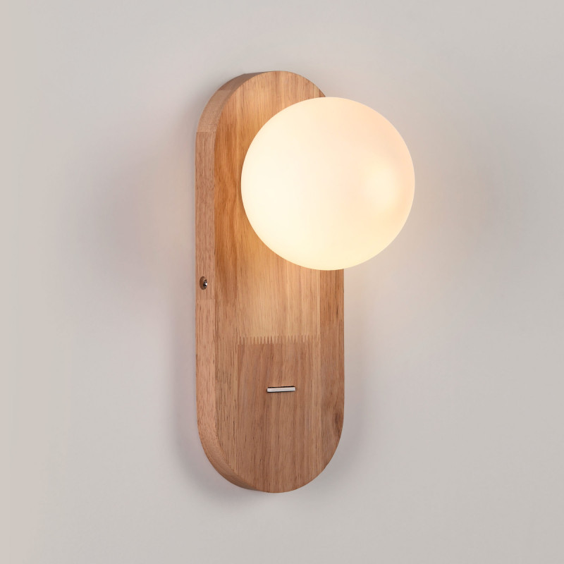 Applique da parete sfera di cristallo "SOMA" con interruttore - E27 - Legno