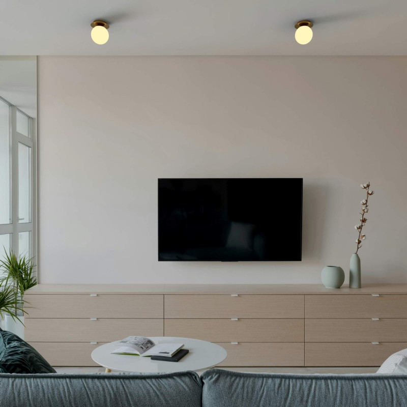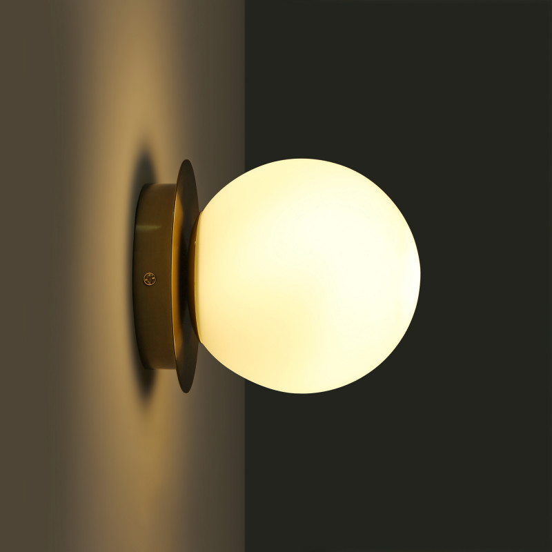 - Design minimalista: composta da una sfera in vetro opalino su una base in alluminio con finitura oro o cromo, si adatta perfettamente a interni classici, retrò o moderni.