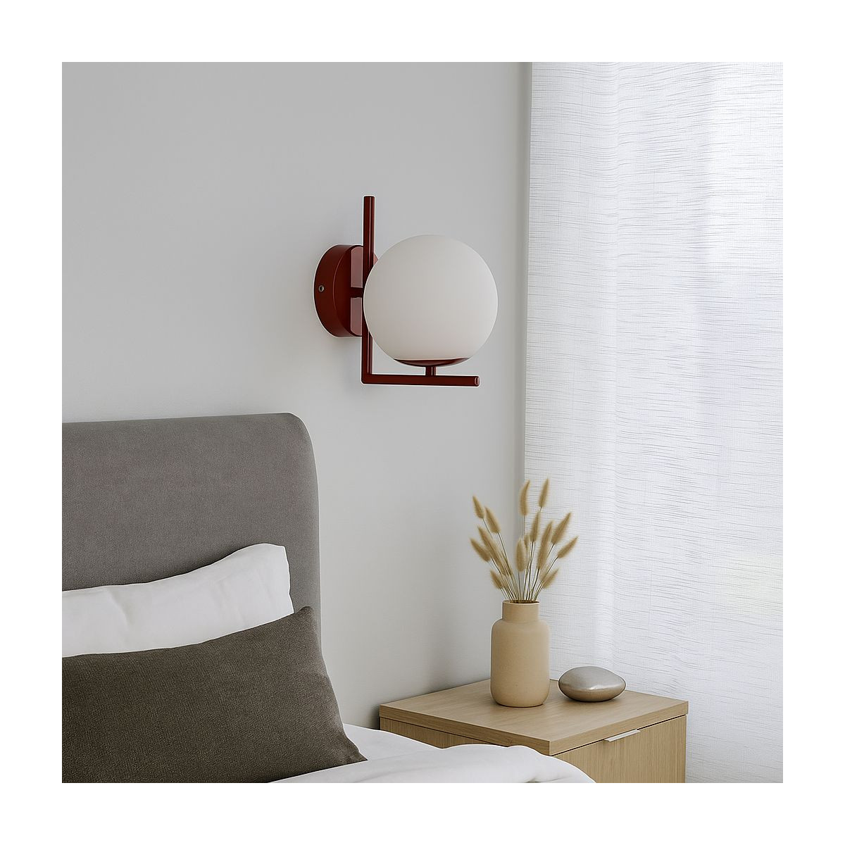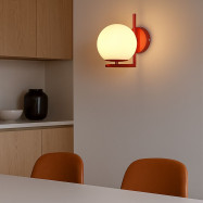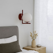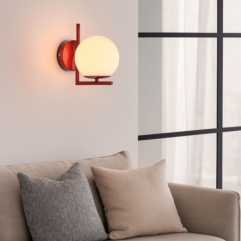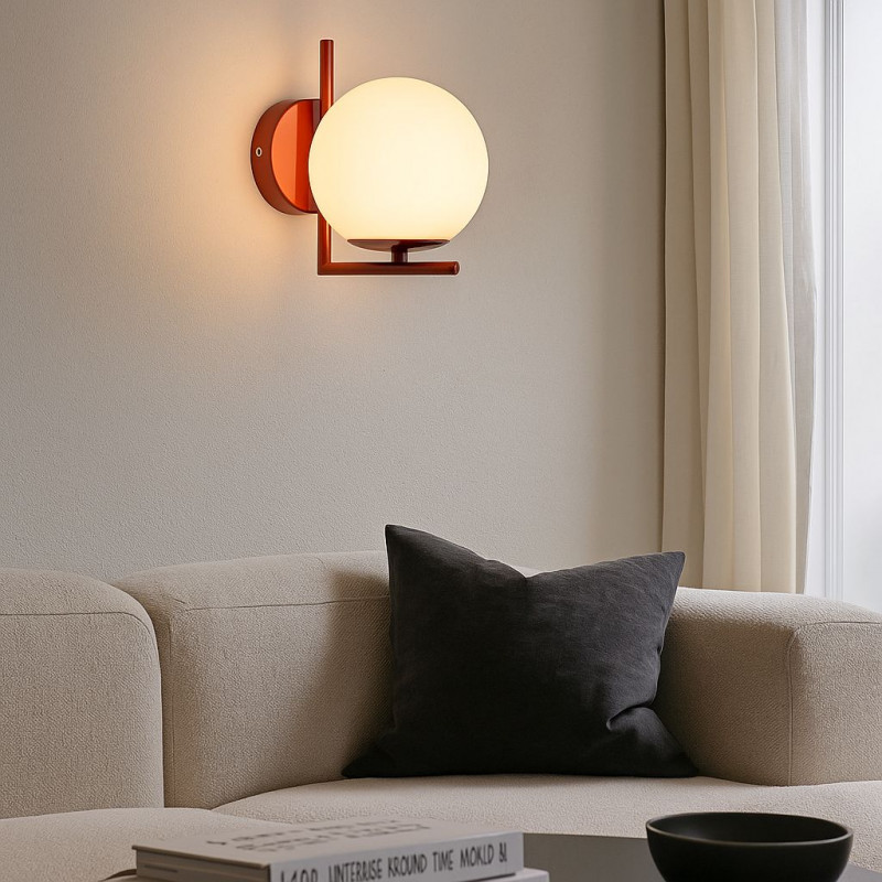 Applique "Margaret" dal design elegante, composta da una sfera in vetro opalino e da una base in metallo.