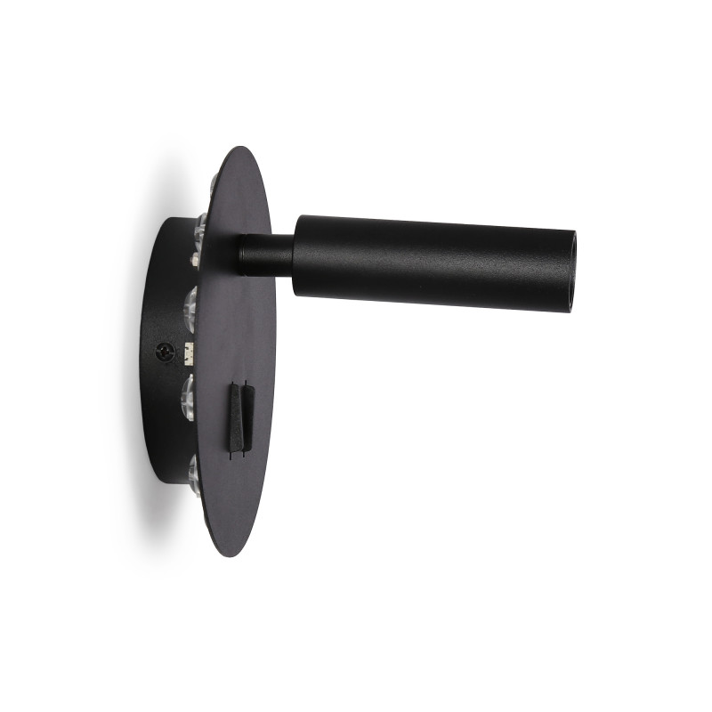 Incorpora un faretto orientabile da 3W che funziona come lampada da lettura e un apparecchio perimetrale da 6W che emette una luce ambientale diffusa. È dotata di due interruttori indipendenti che ne facilitano il controllo.