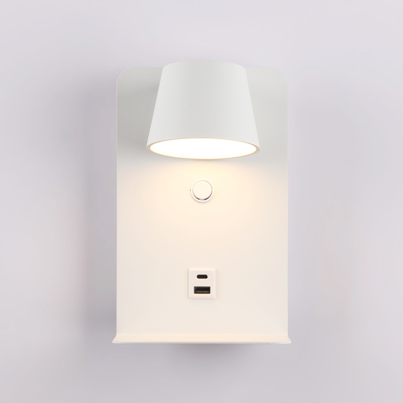 Con un design in stile nordico, questa lampada da parete si integra facilmente negli ambienti moderni, combinando l'estetica con soluzioni pratiche per l'illuminazione e la ricarica dei dispositivi.