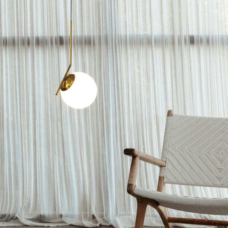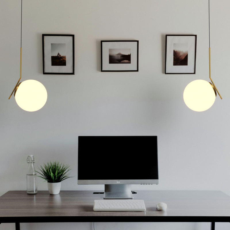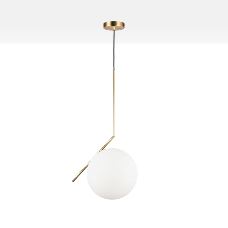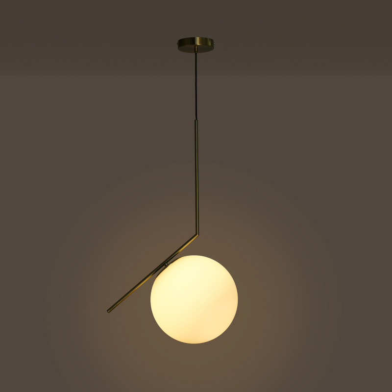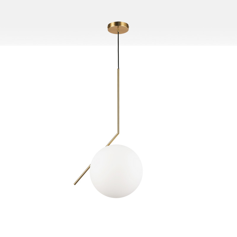 - Design minimalista: la sfera in vetro opalino abbinata a una struttura in alluminio con finitura dorata si adatta perfettamente a interni classici, retrò o moderni.