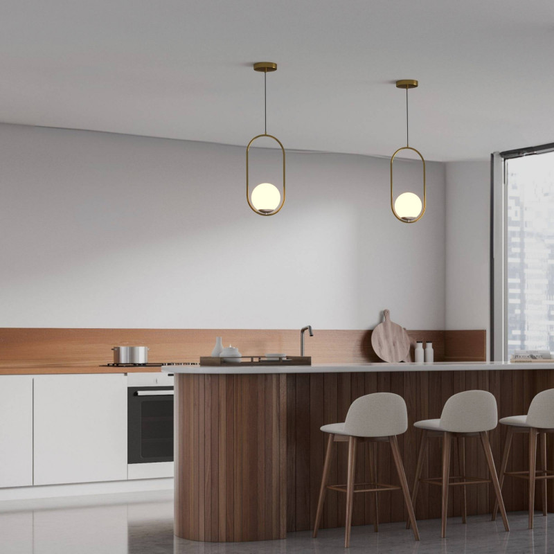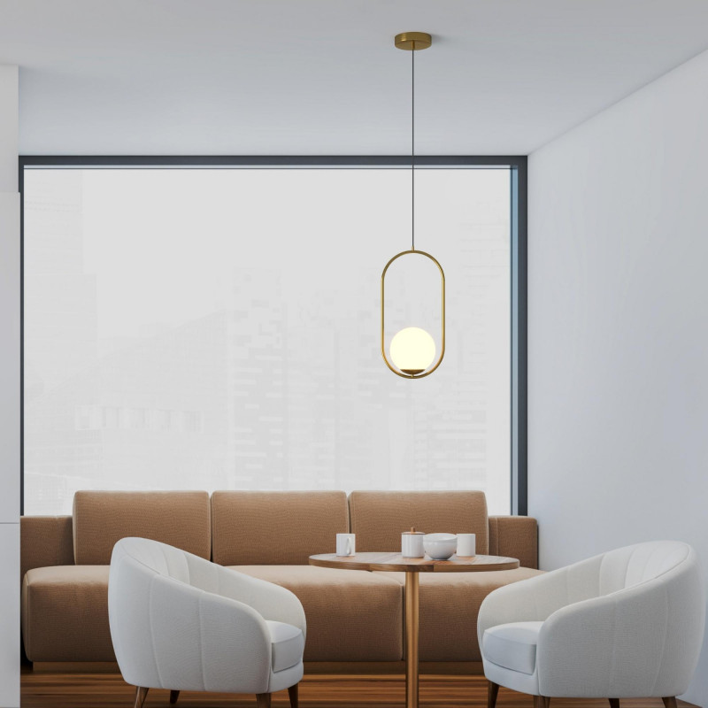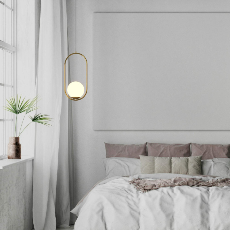 - Design minimalista: con una sfera in vetro opalino sospesa su una struttura in alluminio nelle finiture oro o cromo, questa lampada si adatta perfettamente a diversi stili decorativi.
