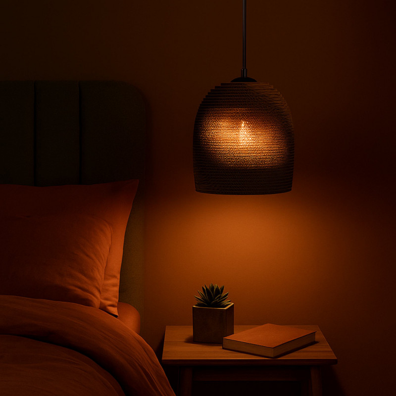 - Materiale ecologico: paralume in cartone ondulato, un materiale sostenibile e riciclabile che garantisce leggerezza e durata.