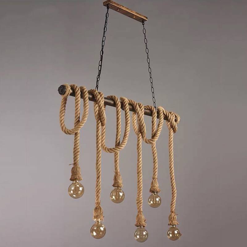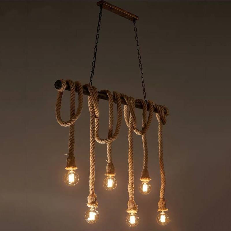 Lampada a sospensione vintage realizzata con corde e tubi di canapa