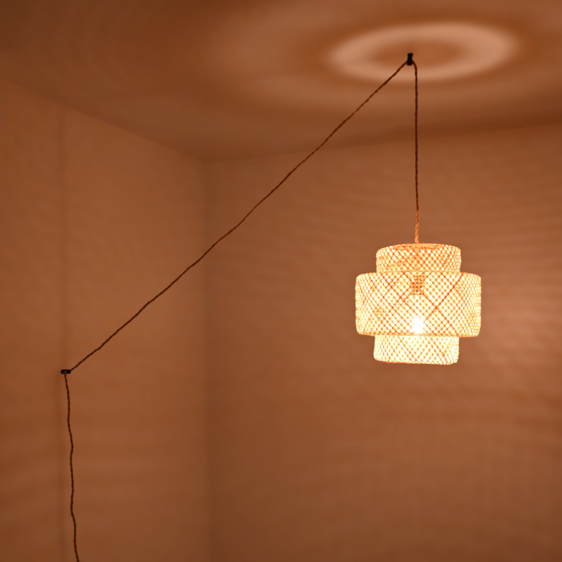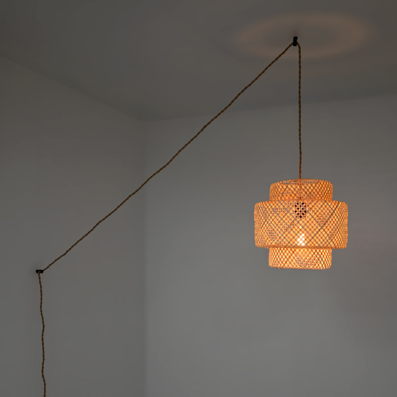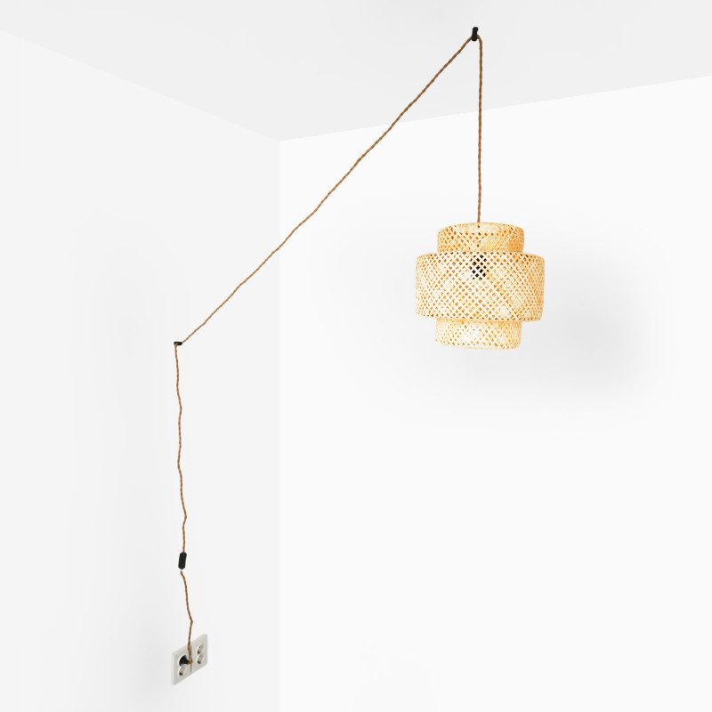 • Installazione flessibile: include un cavo regolabile con due ganci di decentramento per diverse configurazioni. Include interruttore e presa Schuko, ideale per gli spazi senza un punto luce nelle vicinanze. Disponibile in nero, bianco e corda naturale.