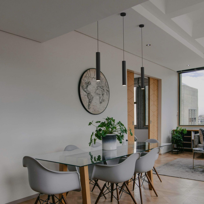 - Design contemporaneo: la sua silhouette tubolare con finitura bianca o nera si adatta a decori moderni e minimalisti.
