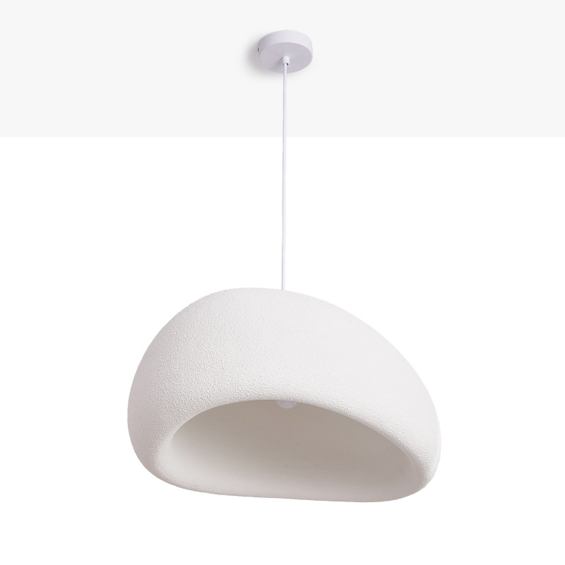 Lampada a sospensione in resina con finitura strutturata. Il suo design artigianale e i toni neutri conferiscono calma e armonia visiva a qualsiasi ambiente.