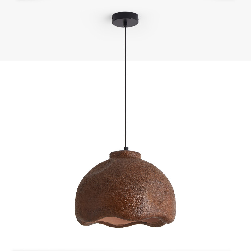 Lampada a sospensione in resina con finitura grezza e bordi ondulati. Il suo design artigianale e i toni neutri conferiscono calma e armonia visiva a qualsiasi ambiente.