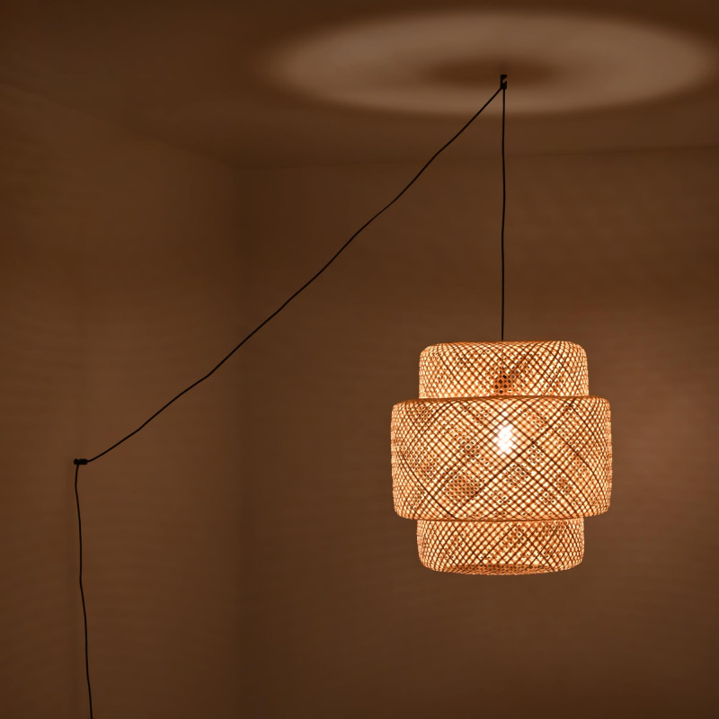 Lampada sospesa in vimini "JENSEN" - Ø50cm - Con interruttore e spina - E27