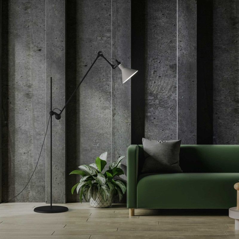 RUBY 215 è una lampada da terra progettata per offrire un'illuminazione direzionale con uno stile moderno e industriale.