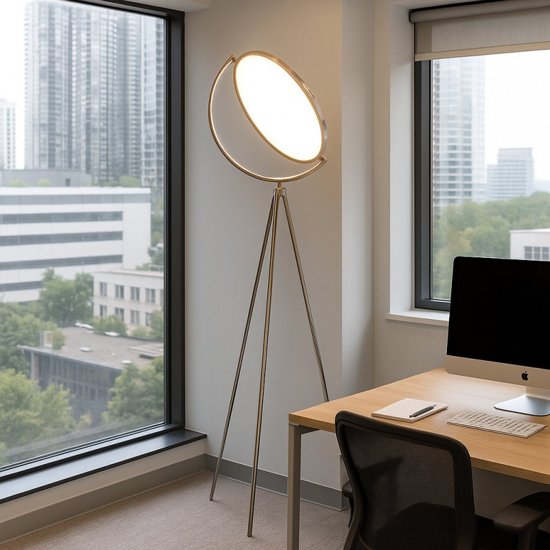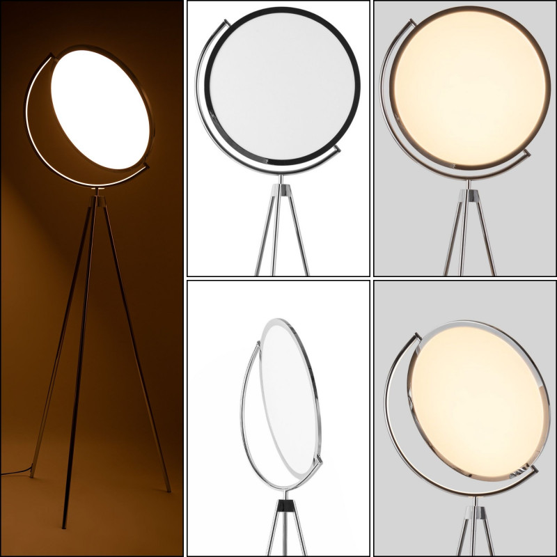 La lampada da terra "Eyes" ridefinisce l'illuminazione con il suo design moderno ed elegante. La sua struttura a treppiede in alluminio e il disco piatto regolabile non si distinguono solo per l'estetica, ma anche per la loro funzionalità avanzata.