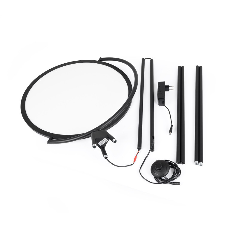 - Facile montaggio: il treppiede viene consegnato smontato e si monta facilmente avvitando le parti. Include un cavo di 200 cm con interruttore a pedale, per un'installazione flessibile che si adatta a qualsiasi spazio, dal soggiorno allo studio di design.