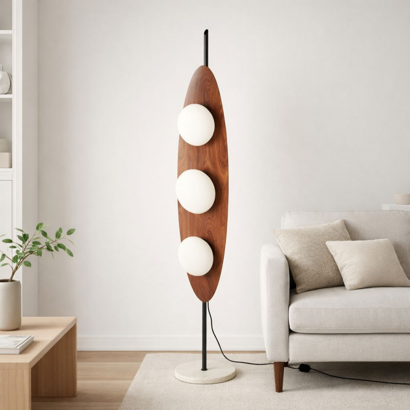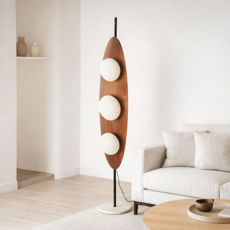 Lampada da terra "Pacific" - Effetto legno - 3 x G9