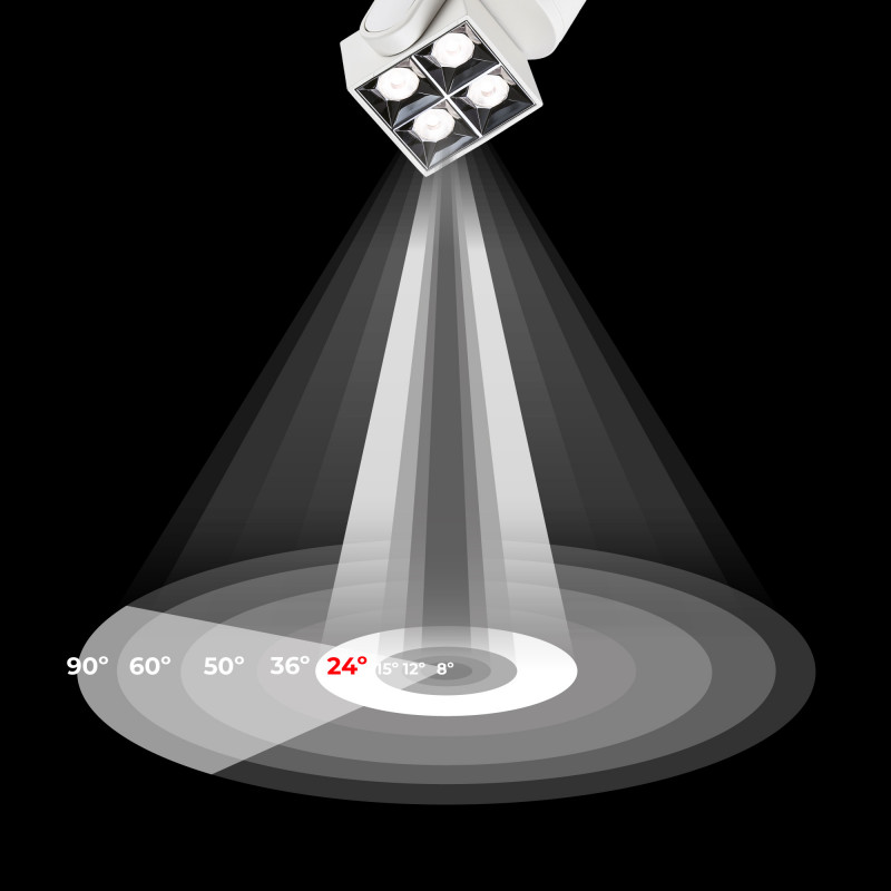 - Angolo di illuminazione di 24°: ideale per accentuare i dettagli decorativi e i prodotti.