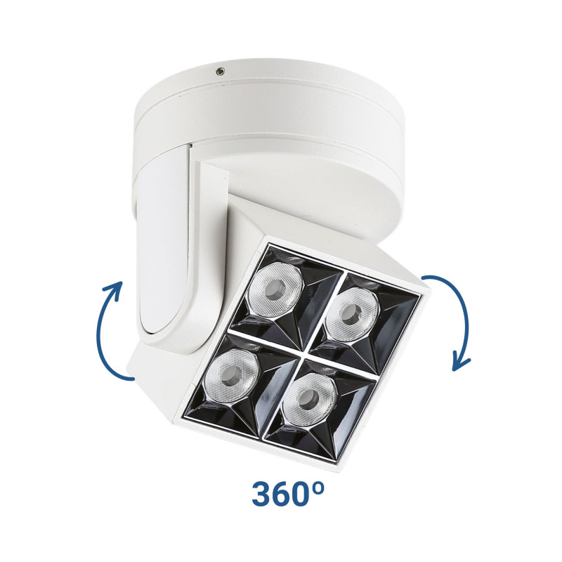- Design quadrato: struttura composta da 4 faretti indipendenti, per un'illuminazione uniforme e decorativa.