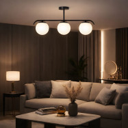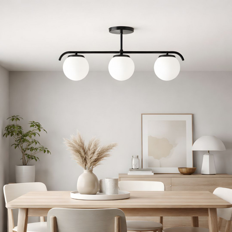 Lampada da soffitto "Talí" accuratamente progettata con tre squisite sfere di vetro opalino.