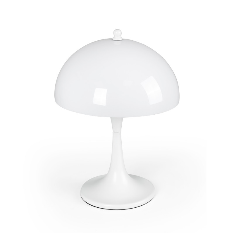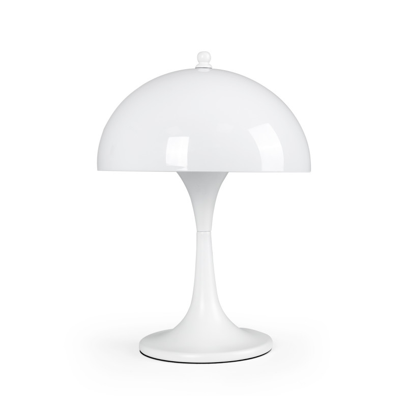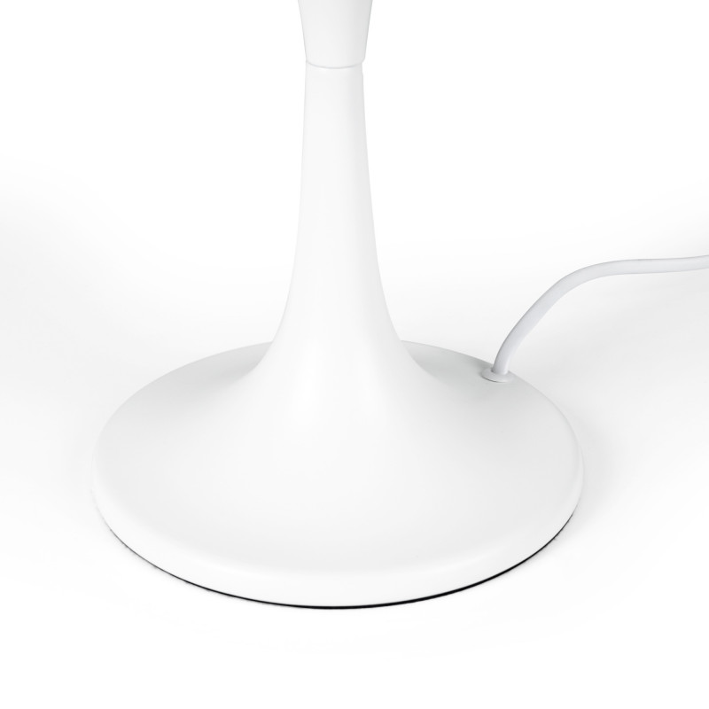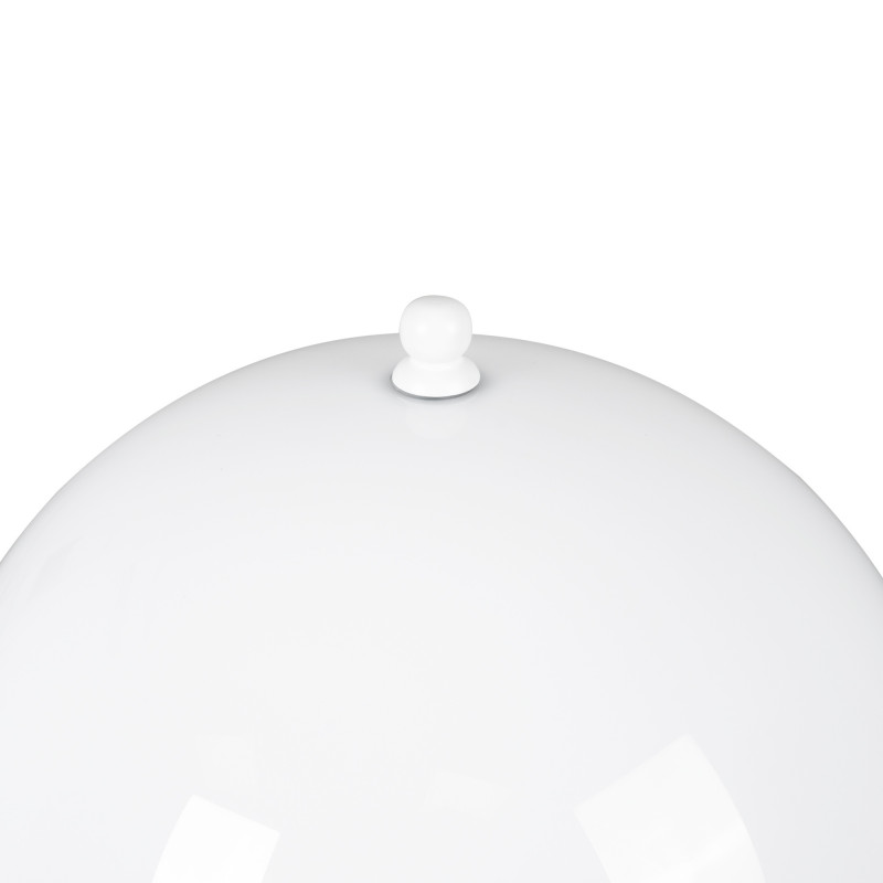 - Forma organica e raffinata: il suo paralume semisferico in bianco opalino dirige la luce verso il basso, riflettendola dolcemente per creare un'atmosfera accogliente ed elegante.