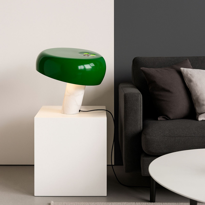 • Materiali pregiati: paralume in metallo laccato, diffusore in vetro e base in marmo bianco per una durata e un'eleganza eccezionali.