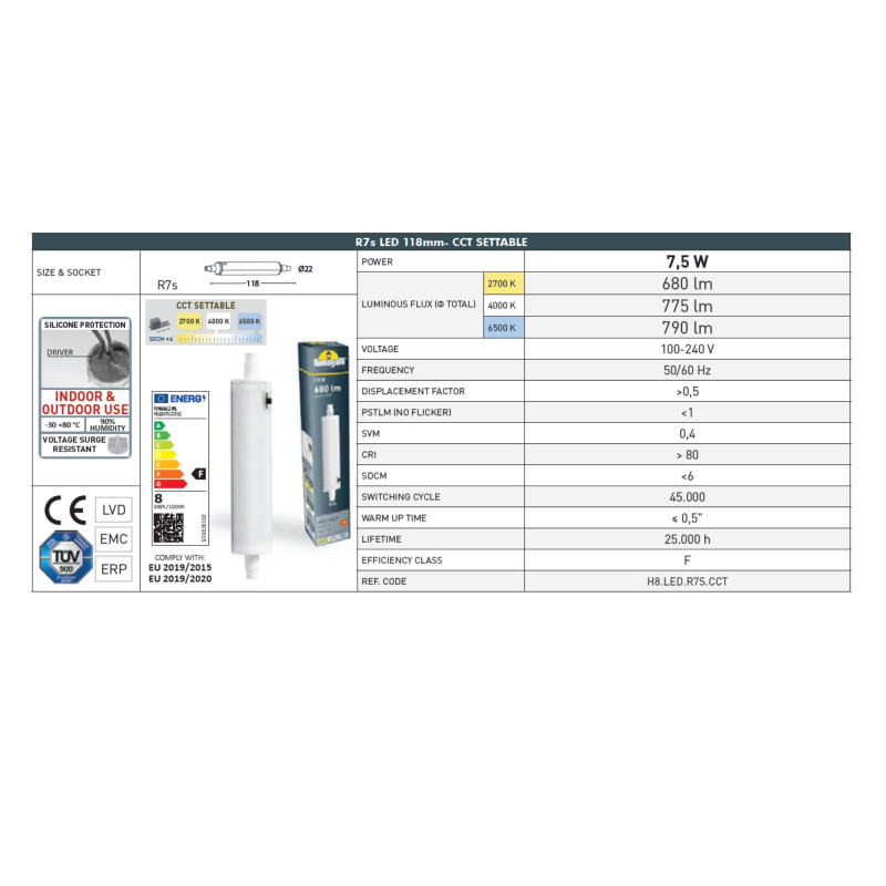 Lampadina LED R7S FUMAGALLI - CCT - 7,5W - 800lm