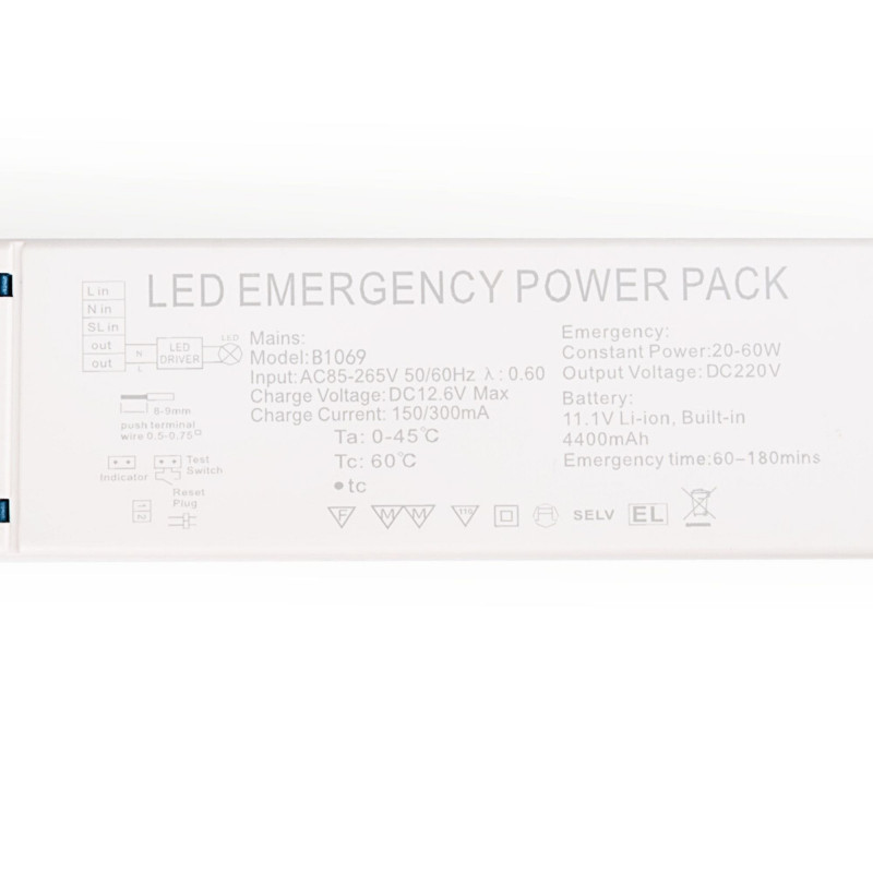 Driver LED per emergenza - Uscita 3-60W - Autonomia 3h - Luce 3-60W