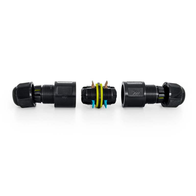 Questo connettore impermeabile è stato progettato per garantire una giunzione sicura in ambienti difficili. Ideale per l'uso all'aperto, è sommergibile e resistente a polvere e umidità.